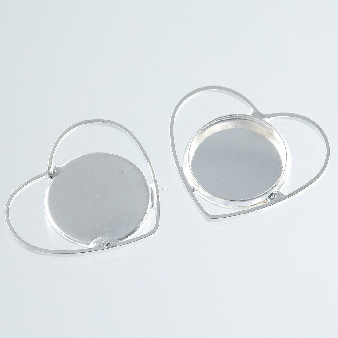 ミール皿 シルバー 12mm 丸 白銀 ハートフレーム付き カン無し 10個 セッティング 台座 レジン アクセサリー パーツ 金具 AP2507
