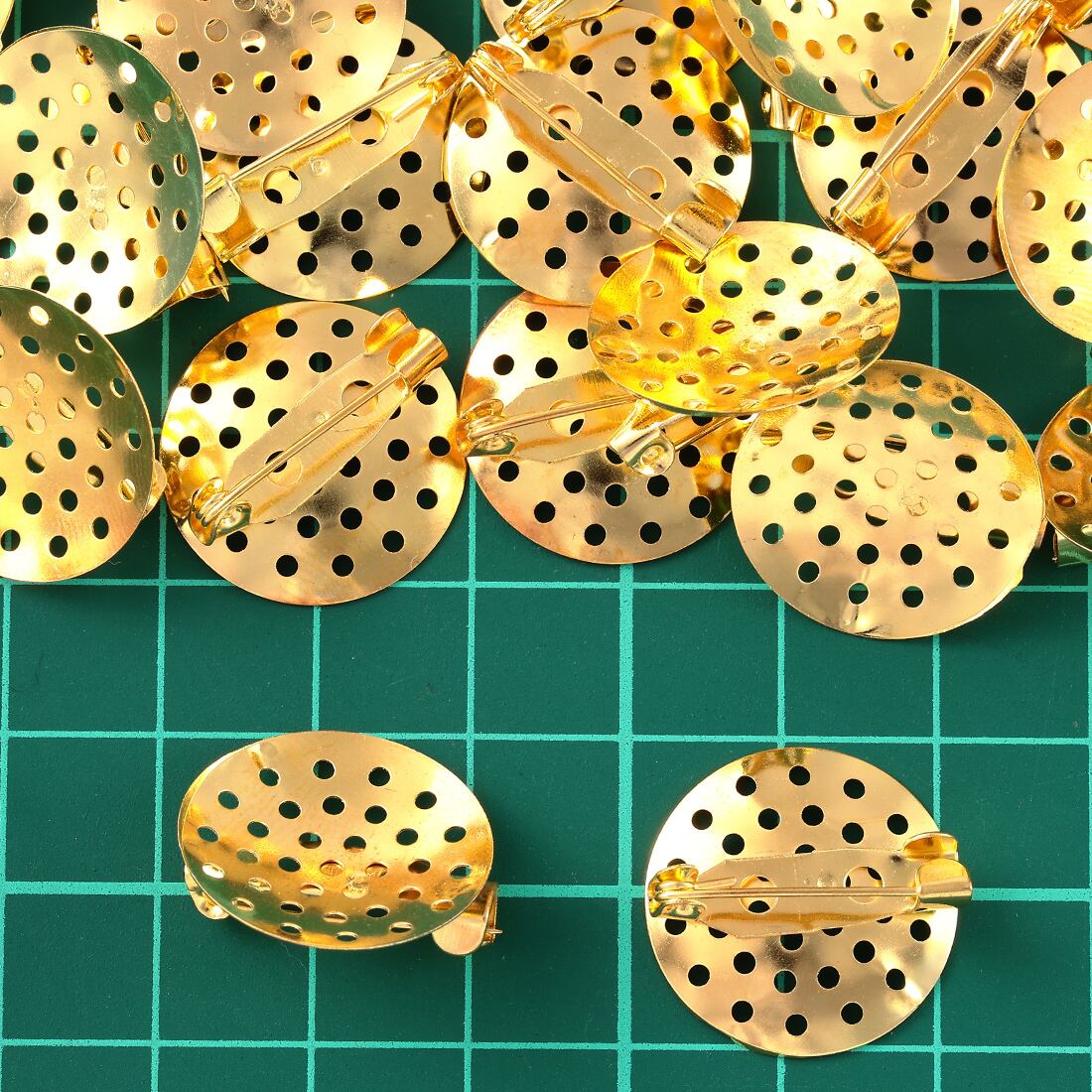ブローチピン 20mm 台座 シャワー金具 付き ゴールド 20個 セッティング台 手芸 アクセサリー パーツ AP2512