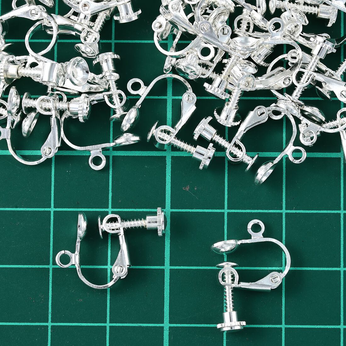 イヤリング パーツ シルバー 40個 白銀 ネジバネ式 5mm 台座 丸皿 お椀型 カン付き アクセサリー 金具 ハンドメイド AP2586