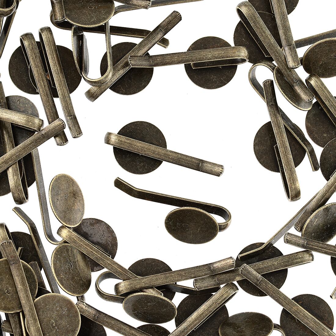 ポニーフック パーツ 丸皿 14mm 台座付き 差し込み式 50個 アンティーク 金古美 ピン ヘアアクセサリー 金具 AP2636