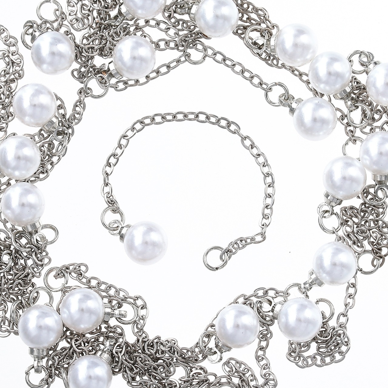 パールチャーム プラ製 丸 20個 チェーン カン付き 全長55~60mm ホワイト シルバー ハンドメイド アクセサリー パーツ AP2674