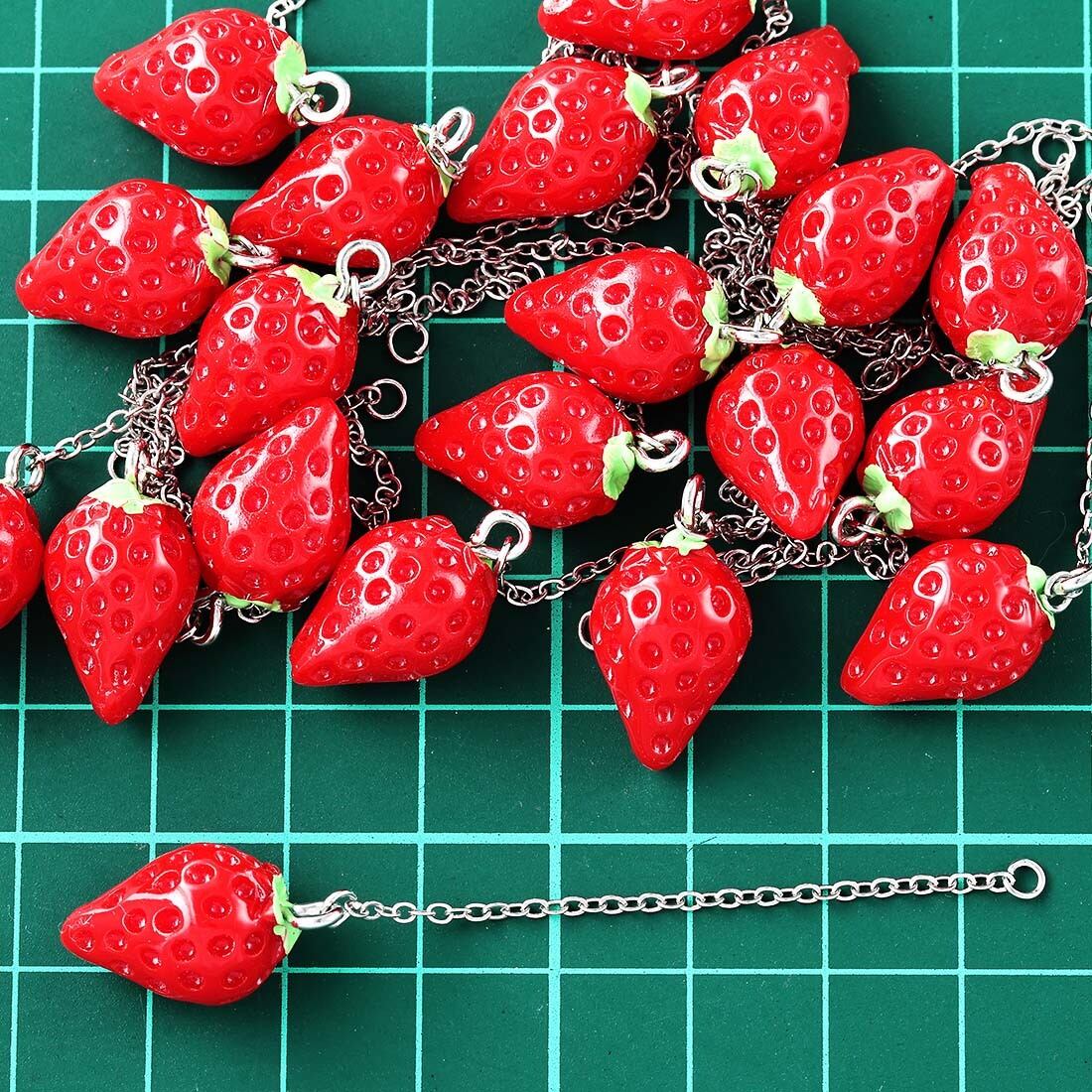 1個サイズ:全長約65mm~約70mm前後(多少誤差有) いちごチャーム径約21mmx12mm(カン含む) チェーンリンク幅約1.5mm(細め) カン内径約2mm(商品画像に簡易計測画像御座います、簡易ですので誤差は御座いますのでご了承下さい。)