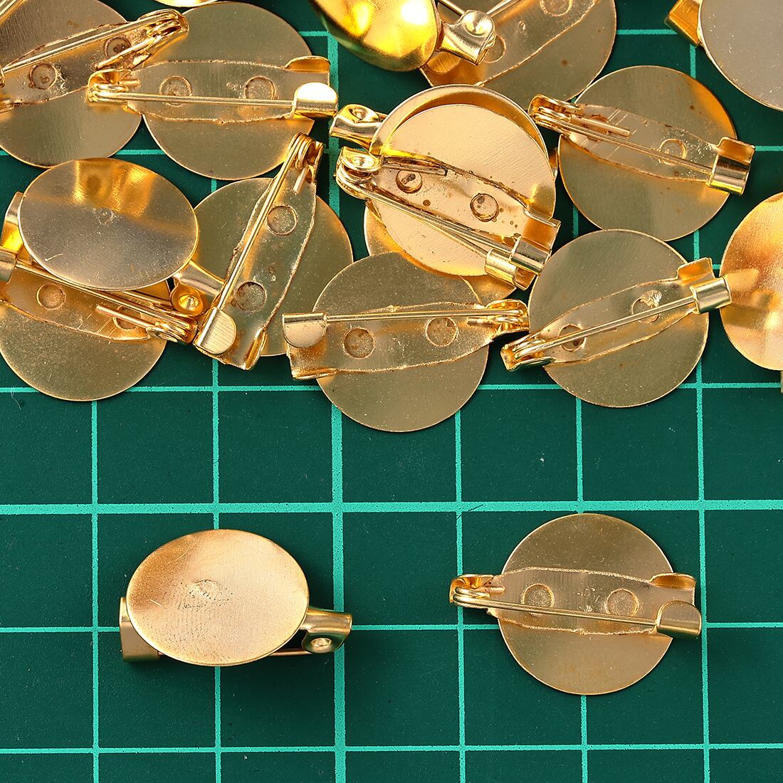 ブローチピン 台座 付き ゴールド 明るめ 15mm 丸皿 ふち無 20個 ブローチ 金具 セッティング台 アクセサリー パーツ AP2702