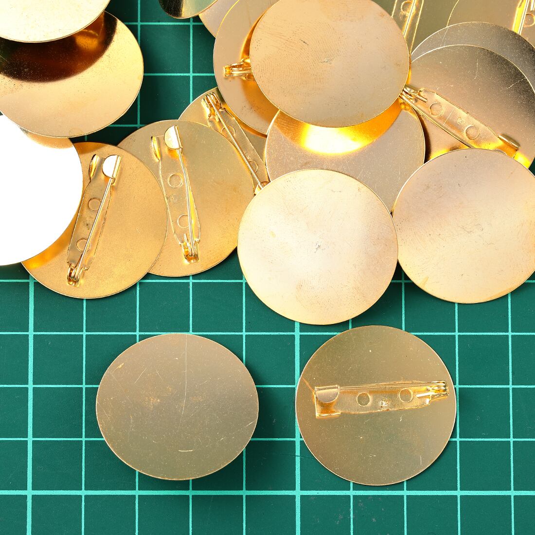 ブローチピン 台座 付き ゴールド 明るめ 30mm 丸皿 ふち無 20個 ブローチ 金具 セッティング台 アクセサリー パーツ AP2705