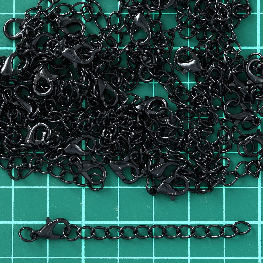 アジャスター チェーン 金具 カニカン 丸カン 付き 40本 黒 ブラック ネックレス ブレスレット 延長 アクセサリー エンドパーツ AP2814