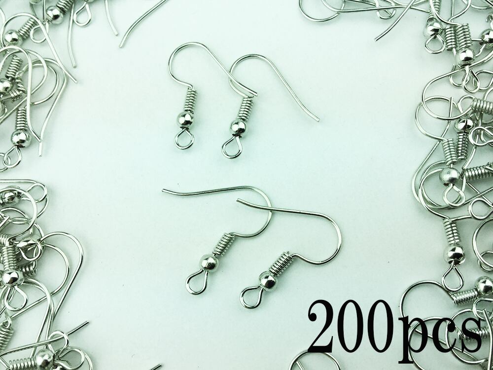 送料無料 ピアスフック シルバー 200個 アクセサリーパーツ (AP0043)