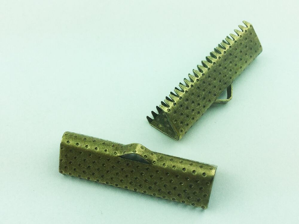 送料無料 ワニグチ 金具 20個 リボン留め レース留め 22mm 金古美 ワニカン ワニ口 アクセサリーパーツ金具 紐留め金具 アクセサリーパーツ (AP0076)