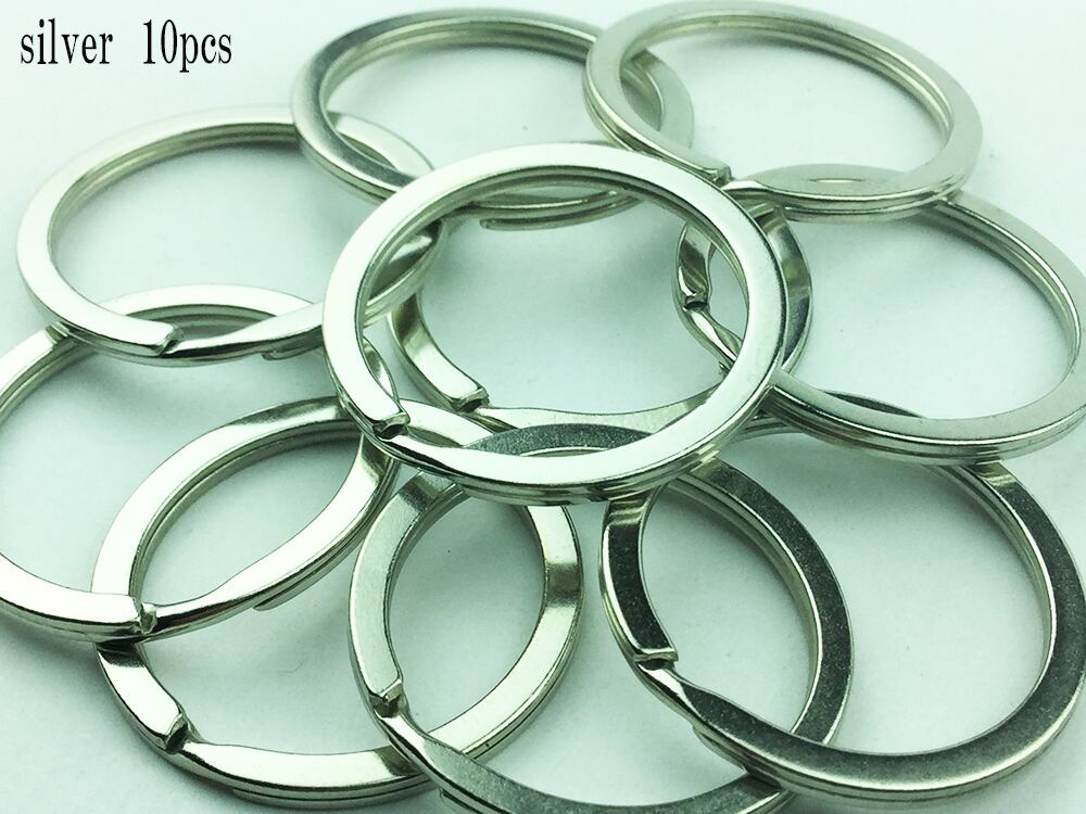 送料無料 平キーリング 25mm シルバー 10個 キーホルダーパーツ ストラップパーツ (AP0078)