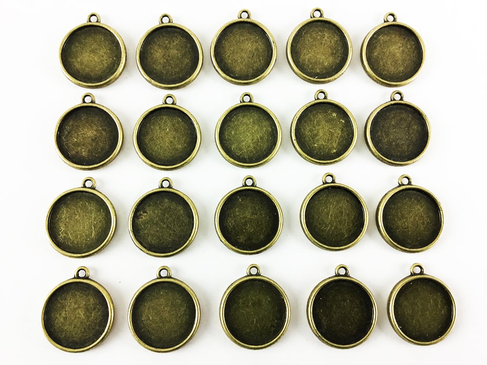 送料無料 ミール皿 金古美 丸 20枚 アンティーク ゴールド 外径18mm内径15mm レジン台 カメオ 台 セッティング 台 レジン アクセサリー パーツ (AP0132)
