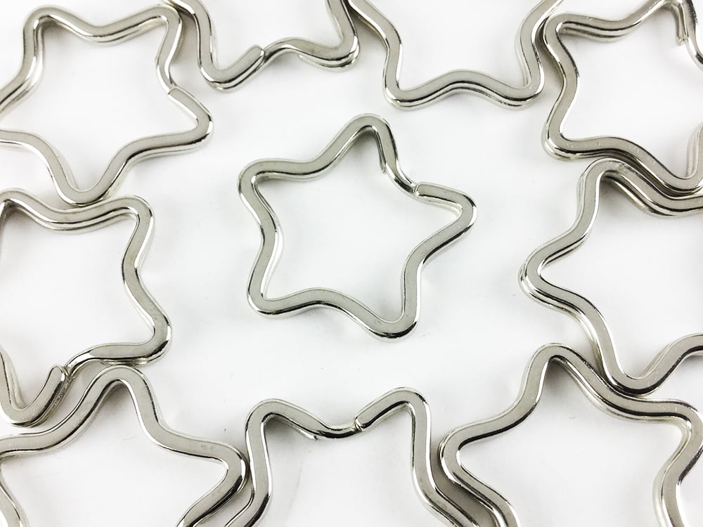 送料無料 平 キーリング 星 シルバー 10個 スター 二重 リング キーホルダー パーツ ストラップ パーツ アクセサリー 金具 (AP0179)