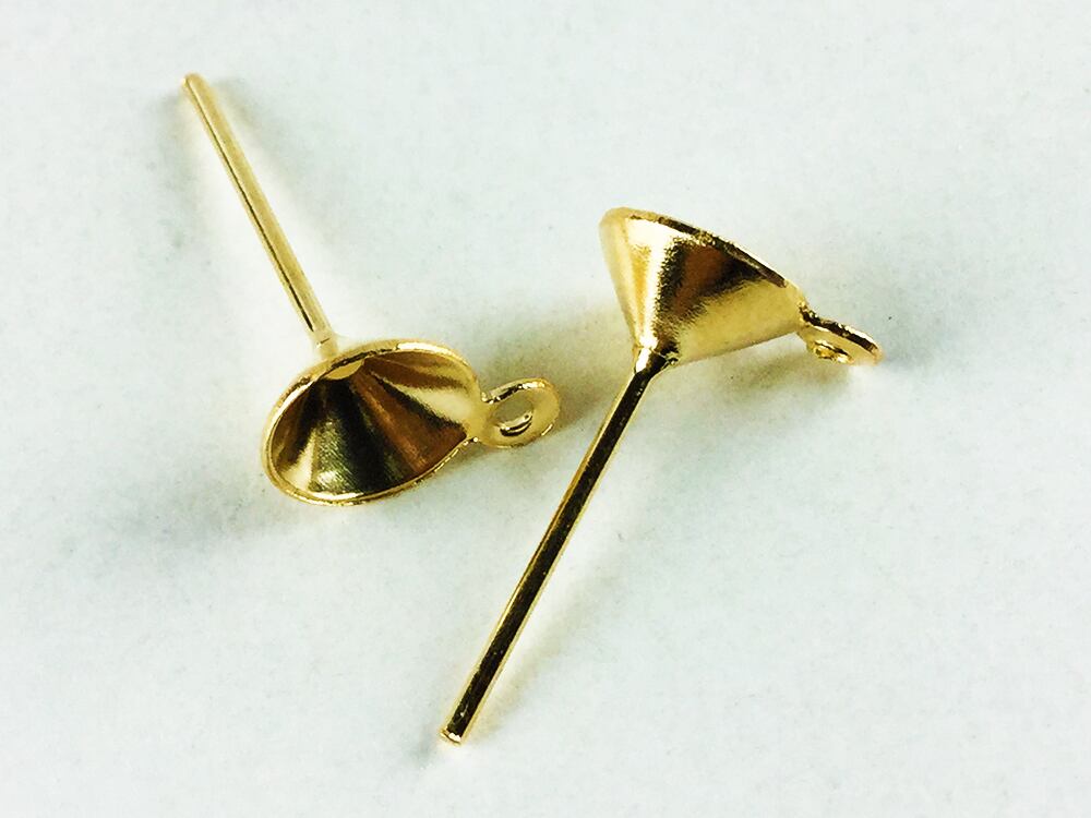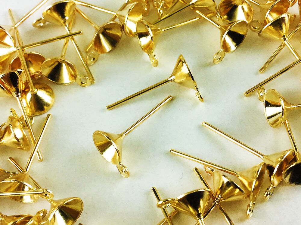 送料無料 ピアスパーツ ゴールド 50個 セット 丸皿 底深 カン付き ガラスドーム ピアス 金具 アクセサリー パーツ (AP0206)