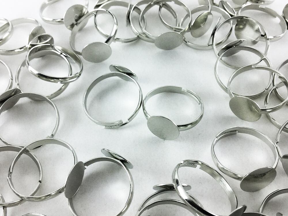 送料無料 リング パーツ 指輪 10mm台座付き シルバー 50個 サイズフリー ハンドメイド 等に アクセサリー パーツ (AP0207)