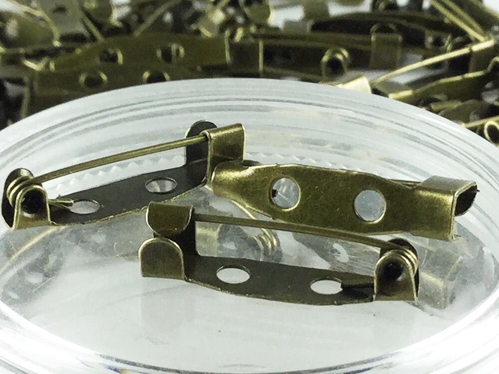 送料無料 ブローチピン 20mm 100個 金古美 アンティーク ゴールド 2穴 ウラピン ブローチ 金具 アクセサリー パーツ (AP0211)