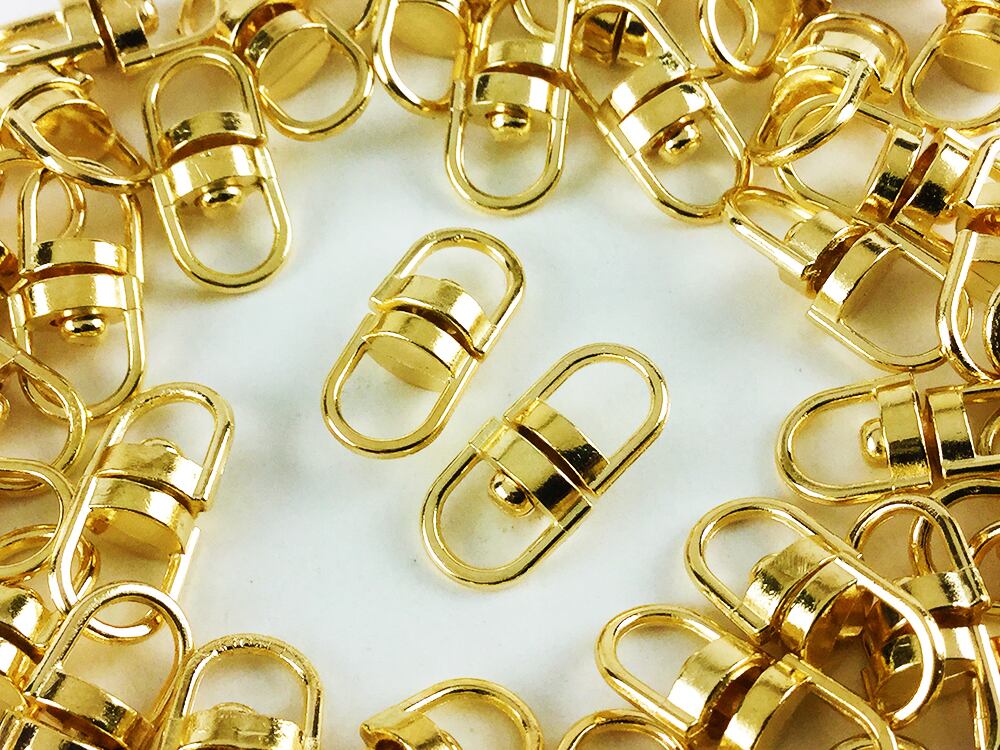 送料無料 回転カン ゴールド 50個 18mmx8.5mm 金色 回転式 カン キーホルダー ナスカン ストラップ パーツ アクセサリー 金具 (AP0214)
