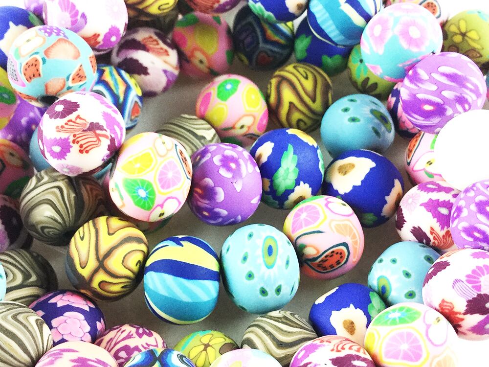 送料無料 ビーズ 樹脂 とんぼ玉 80個 10mm 花柄 和柄 ミックス セラミック ビーズ 粘土 アクセサリー ネックレス ストラップ パーツ (AP0240)