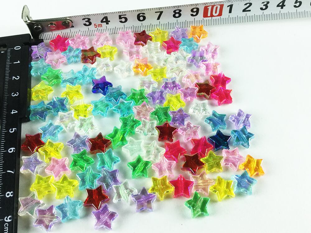 送料無料 ビーズ 星 100個 10mm スター 穴あり カラフル ミックス アクセサリー パーツ チャーム ロンデル レジン 素材 (AP0243)