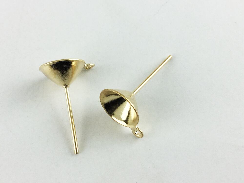 送料無料 ピアスパーツ ゴールド 50個 セット 丸皿 底深 カン付き 皿径8mm ガラスドーム ピアス 金具 アクセサリー パーツ (AP0264)