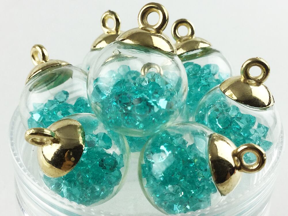 チャーム ガラスドーム 16mm 8個 ガラスドームキャップ ゴールド ラインストーン エメラルドグリーン 完成品 チャーム アクセサリートップ アクセサリーパーツ (AP0267)