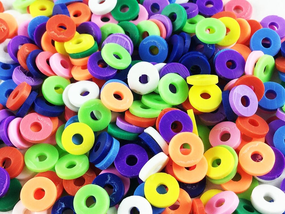 送料無料 スライスパーツ 手芸用 ラウンド6mm 通し穴有 大量ミックス ロンデル スペーサー 樹脂粘土 ハンドメイドパーツ アクセサリーパーツ (AP0276)
