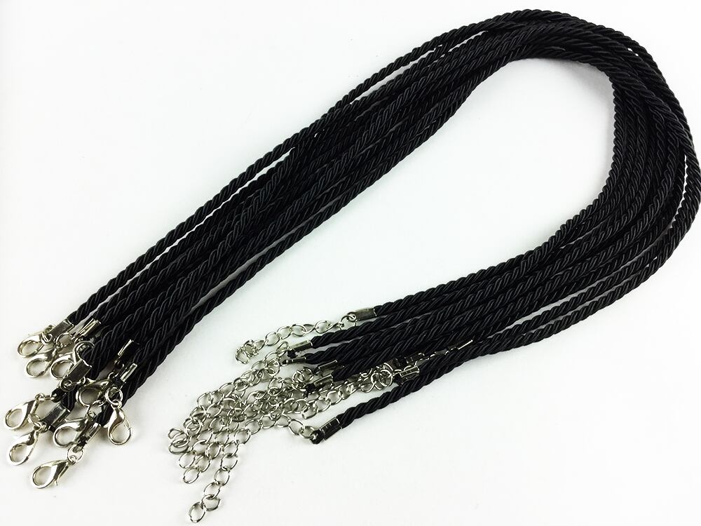 送料無料 ネックレス 紐 10本 ブラック 黒 麻縄 タイプ 編め込み シルバー カニカン &アジャスター 付き チョーカー 紐 金具 革紐 アクセサリー パーツ (AP0279)