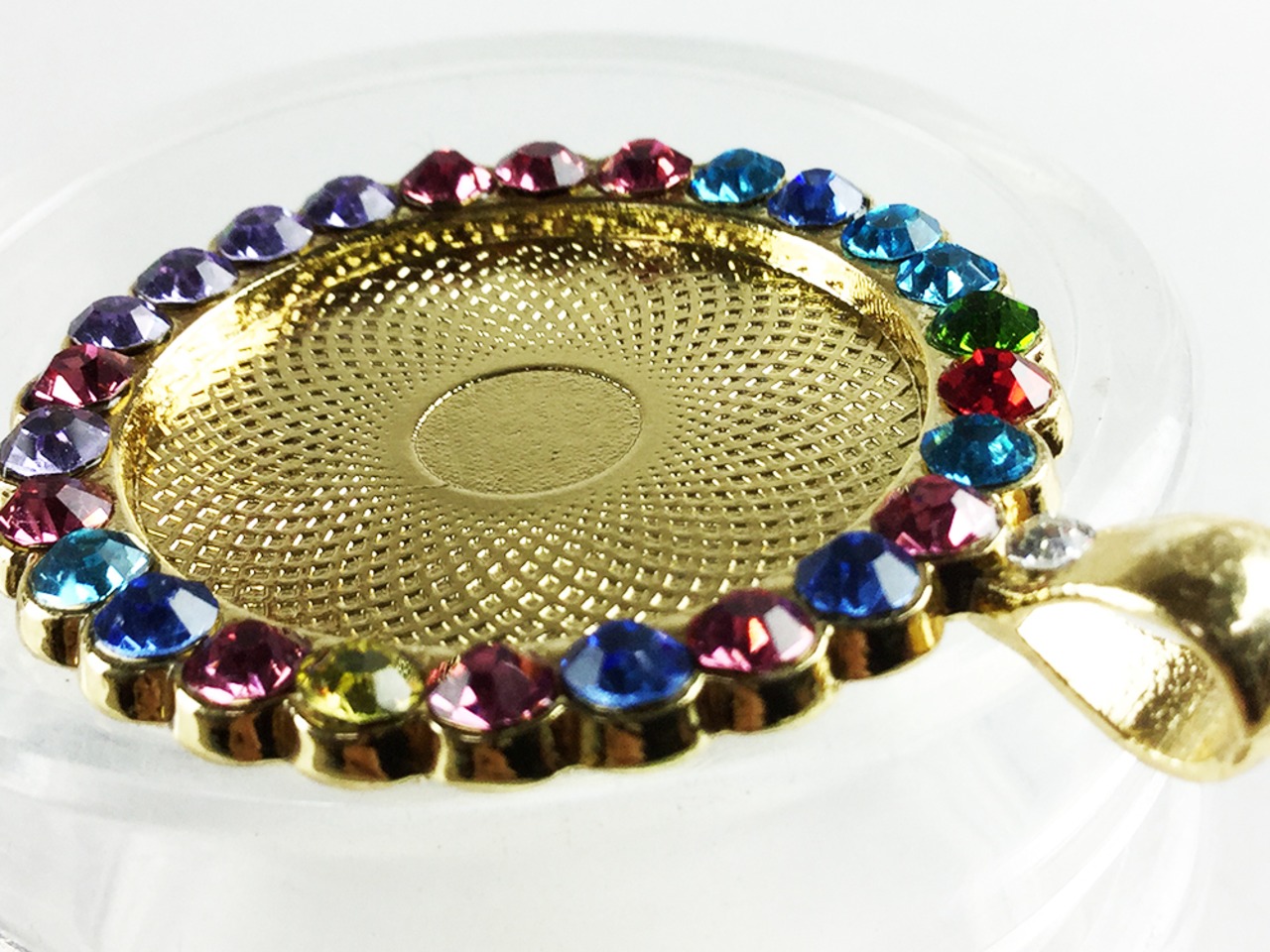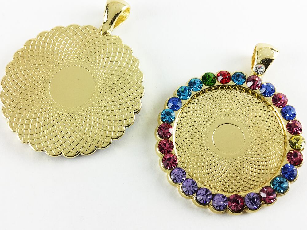 送料無料 ミール皿 ゴールド 丸 10個 カン 太 ラインストーン デコ済 レジン 台 カメオ 台 セッティング レジンフレーム アクセサリー パーツ (AP0288)