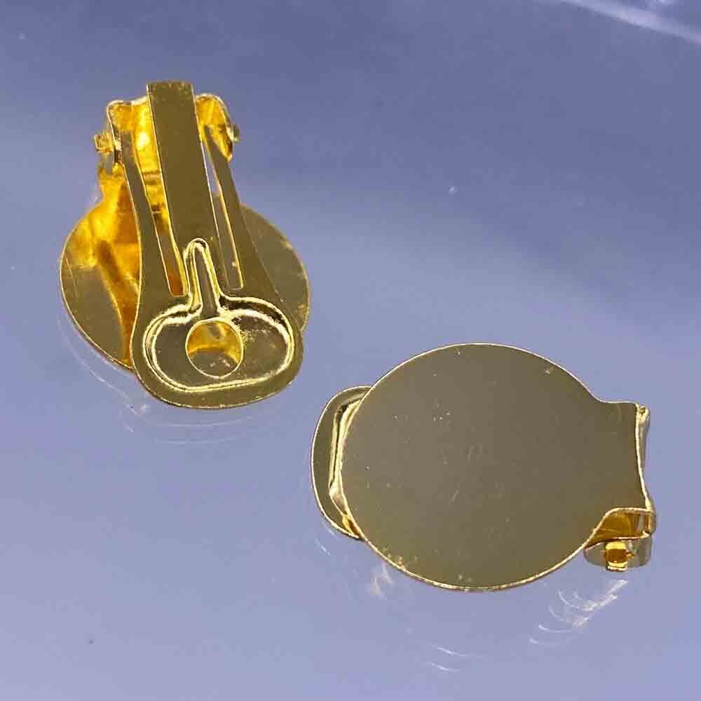 送料無料 クリップ パーツ 丸皿 台座 付き ゴールド 20個 イヤリング パーツ アクセサリー ブローチ 金具 (AP0297)