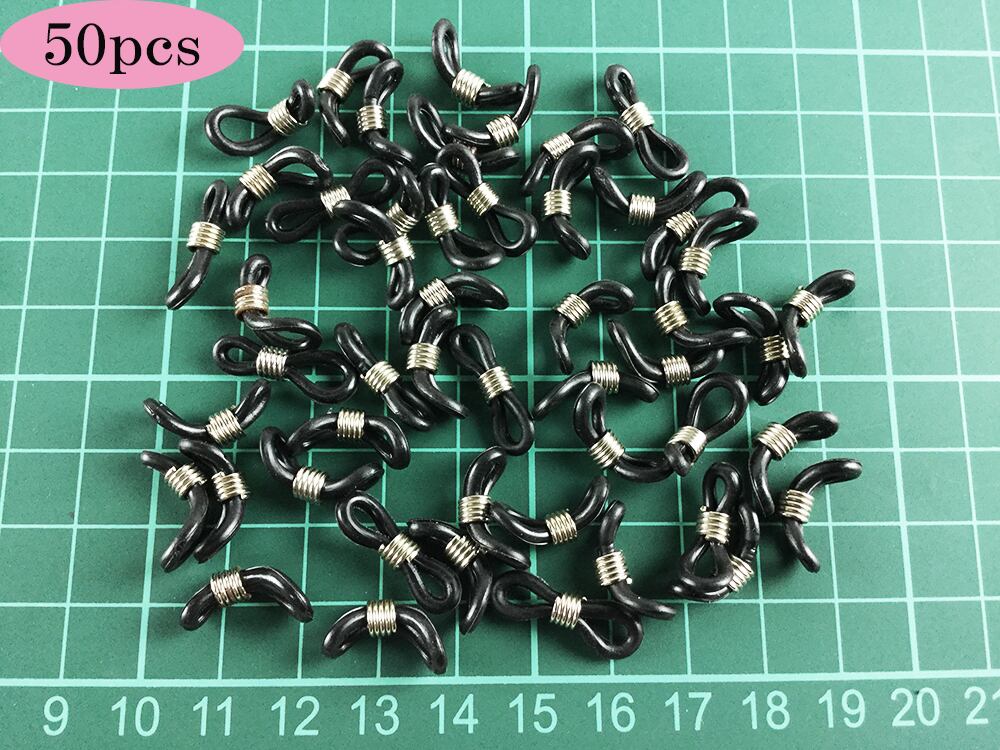 送料無料 グラスコード パーツ シリコン 50個 ブラック 黒 20mmx6mm メガネ チェーン コイルパーツ 金具シルバー アクセサリー 連結 ストラップ パーツ (AP0298)
