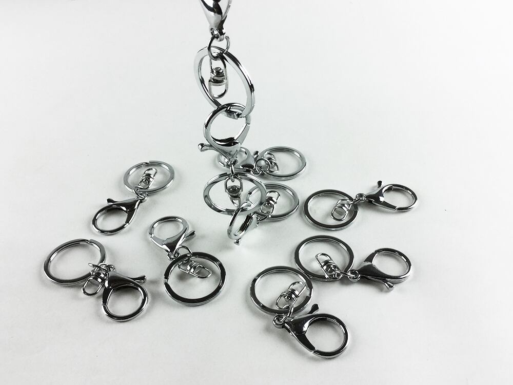 送料無料 完成品 ナスカン シルバー 10個 銀 二重 リング 回転 フック 付き アクセサリー キーホルダー パーツ ハンドメイド 素材 (AP0304)