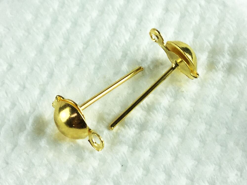 送料無料 ピアス パーツ ゴールド 40個 丸玉 半円 カン 付き 全長14mm ポストピアス ピアス 金具 アクセサリー パーツ (AP0326)