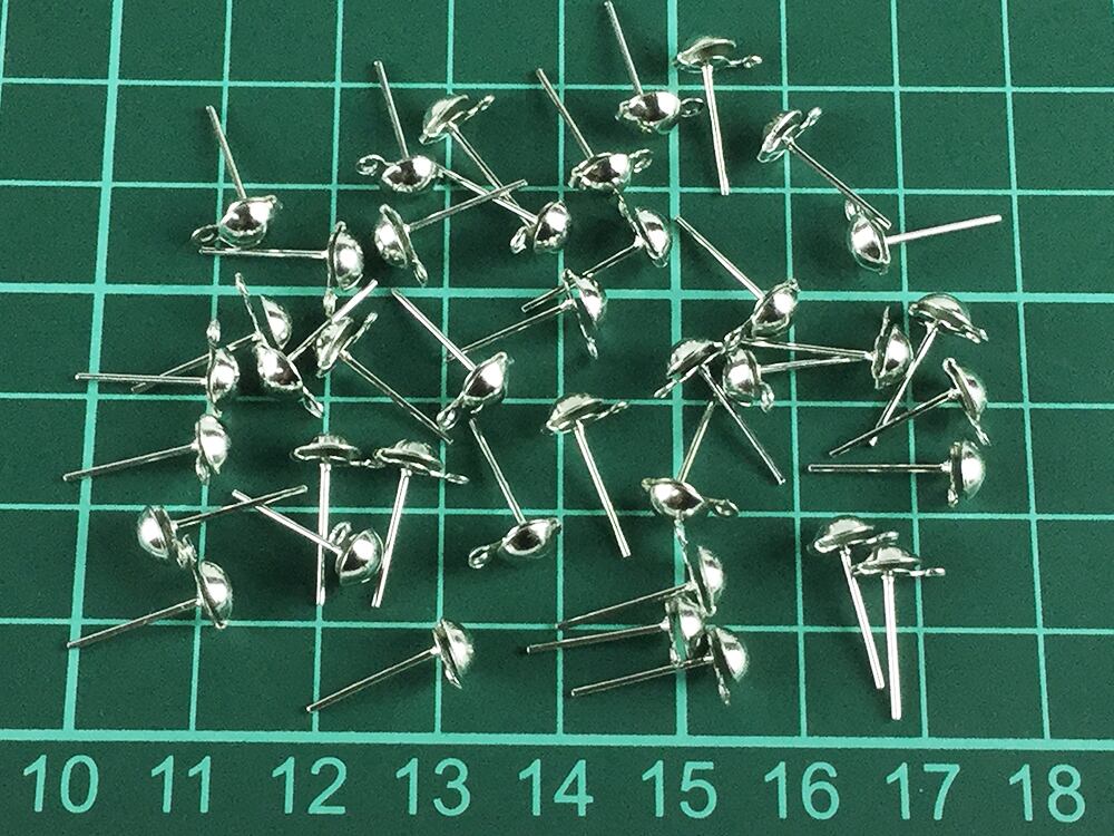 送料無料 ピアスパーツ シルバー 丸玉 40個 5mm半円 カン付き ピアス金具 ハンドメイドパーツ アクセサリーパーツ (AP0327)
