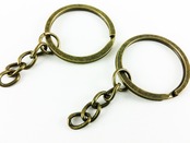 送料無料 平 キーリング 28mm 金古美 50個 丸カン チェーン 付き アンティーク ゴールド 二重 リング ナスカン キーホルダー ストラップパーツ (AP0330)