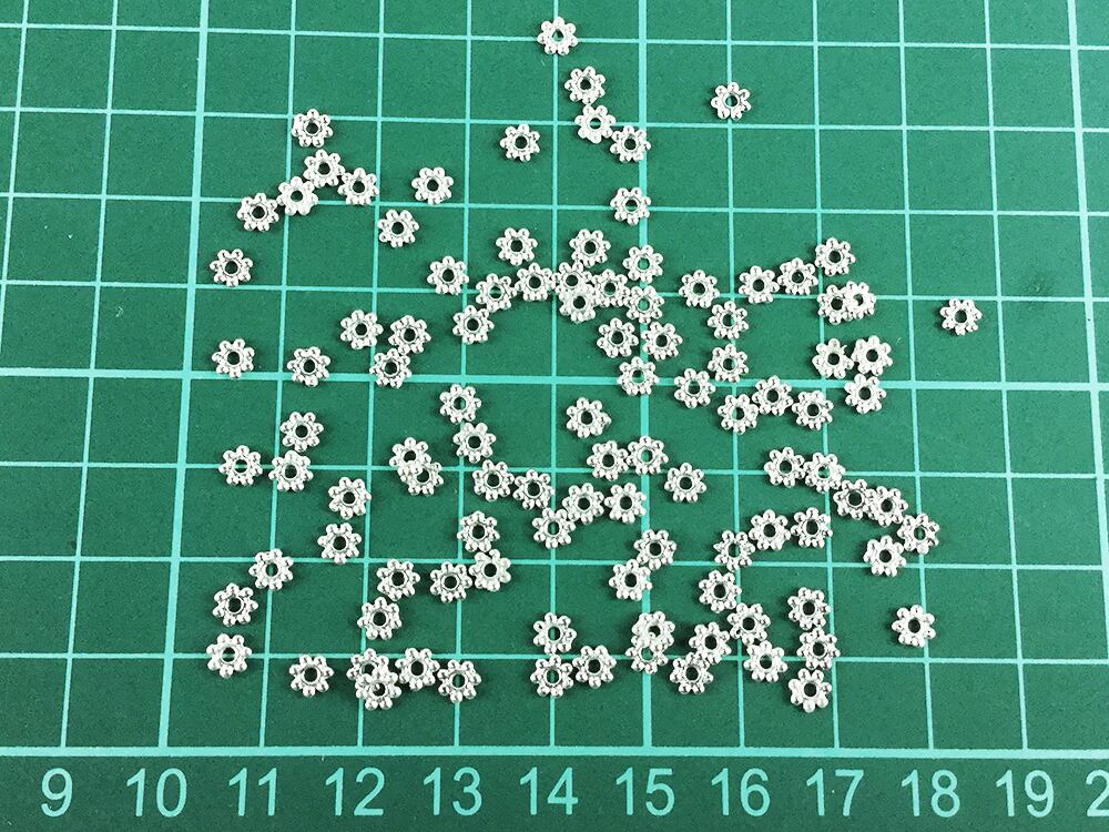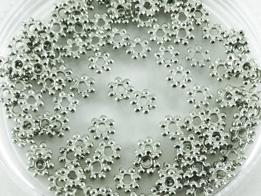 送料無料 ロンデル シルバー 100個 約4.5mm スペーサー チャーム 雪の結晶 スノーフレーク レジン アクセサリー メタル ピアス パーツ (AP0333)