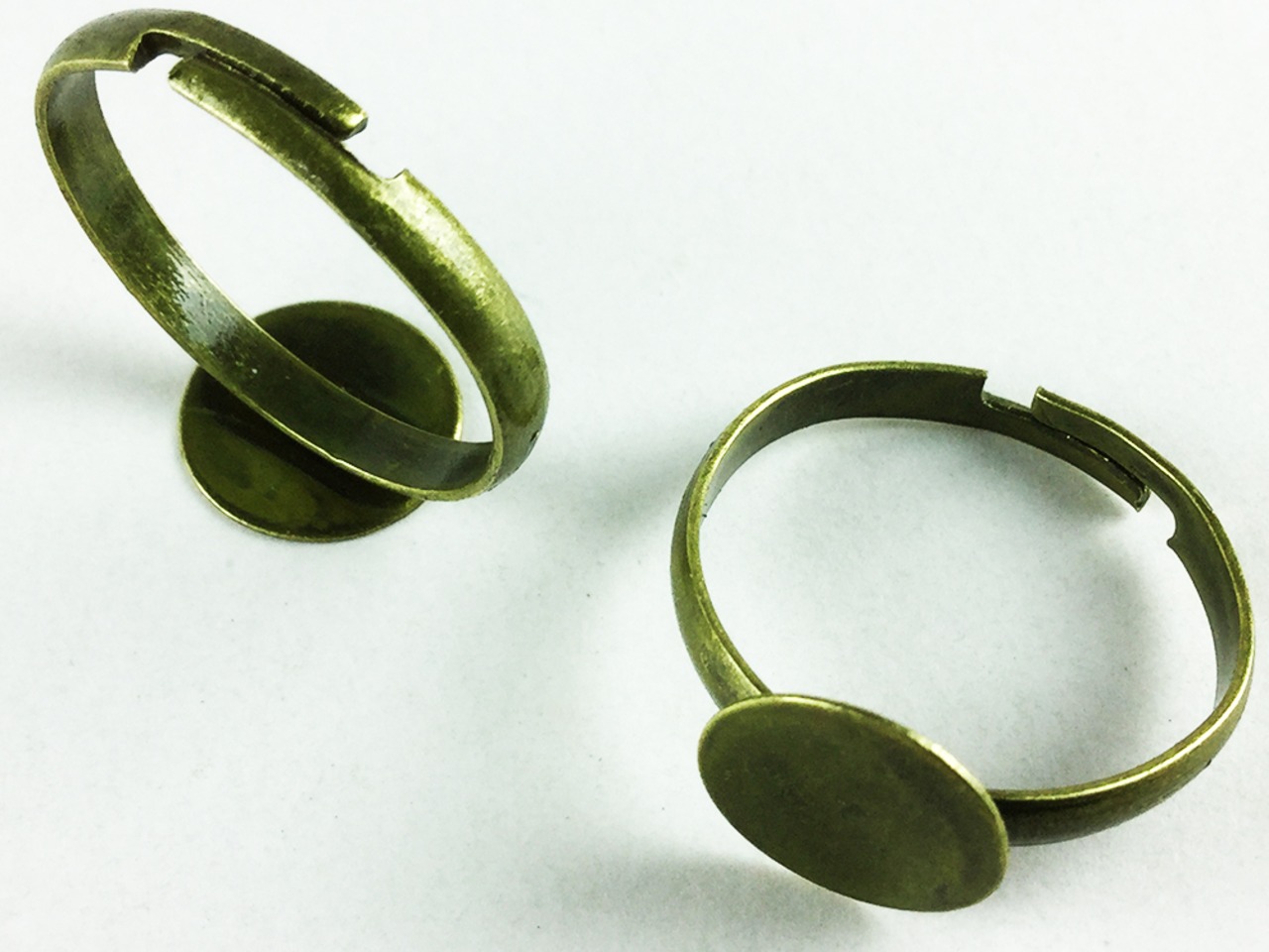 送料無料 リング パーツ 指輪 10mm台座付き 金古美 アンティーク ゴールド 50個 サイズフリー ハンドメイド 等に アクセサリー パーツ (AP0342)