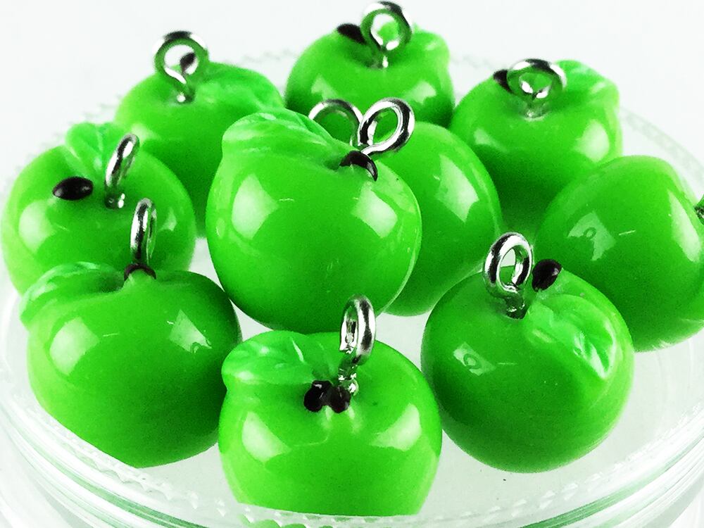 送料無料 チャーム フルーツ リンゴ 10個 11mmx12.5mm グリーン 林檎 りんご アクセサリー パーツ ハンドメイド アップル (AP0417)