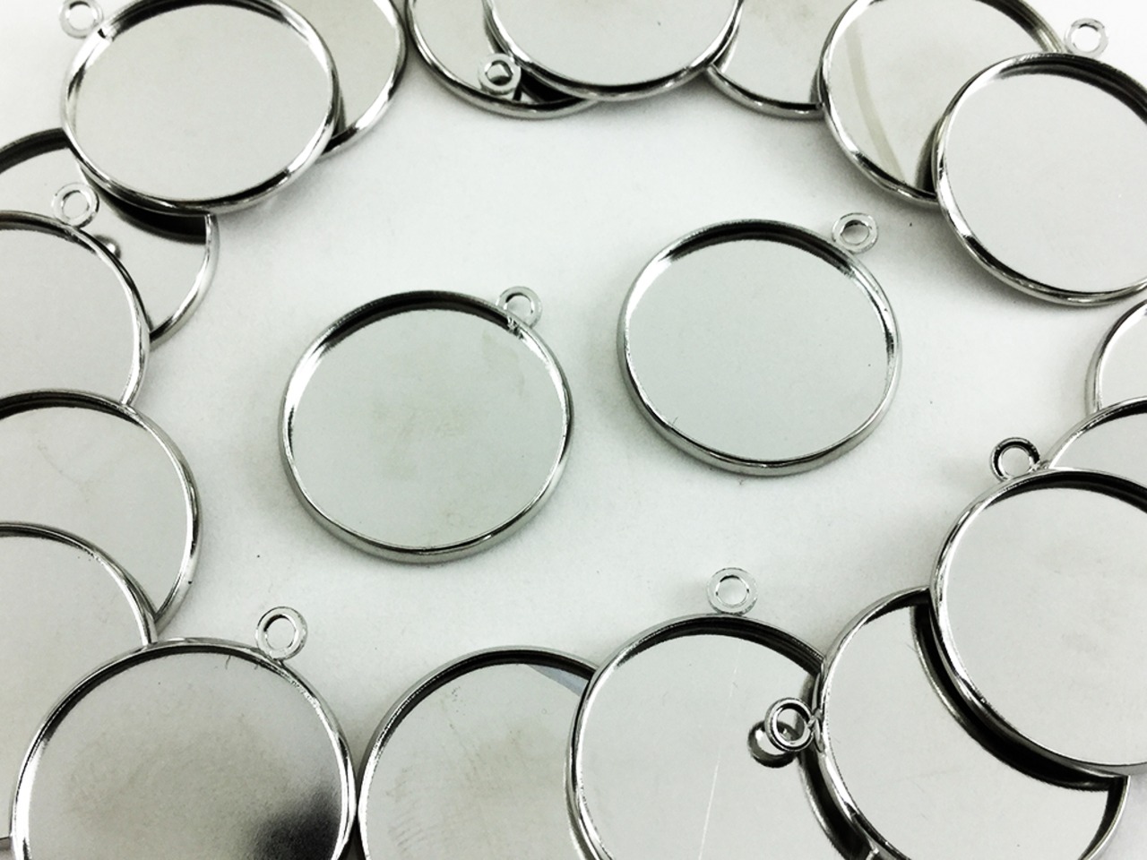 送料無料 ミール皿 丸 20枚 シルバー 外径約22mm内径約20mm レジン 台 カメオ 台 セッティング 台 レジン アクセサリー パーツ (AP0421)