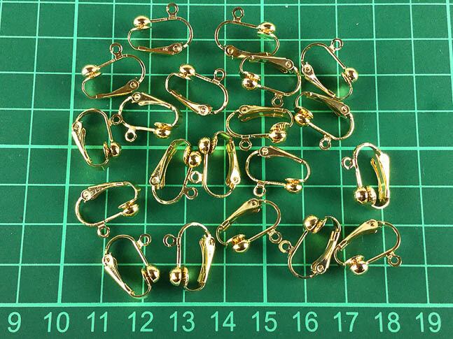 送料無料 イヤリング パーツ ゴールド 20個 KC金 バネ式 カン付き イヤリングパーツ (AP0424)